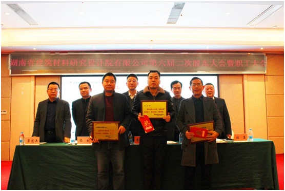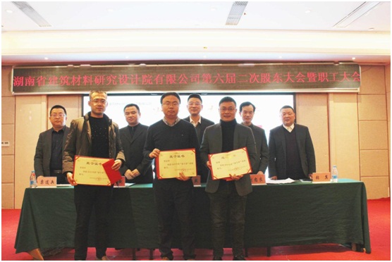 2020年,我们将围绕 “聚焦、合作、创新”的发展战略,秉承“一切为了客户、一切为了市场、一切为了一线”的经营管理理念,弘扬“成就客户,艰苦奋斗,先人后事,数一数二”的湖南院核心价值观,以继续深化全过程服务体系建设、打造建材建筑行业“方案解决专家”为核心,以渠道建设、能力建设、项目管理为三个抓手;坚持建材、建筑、检测科研三大板块差异化经营、共同发展;做实经营支撑、人力资源支撑、财务支撑、质量管理、安全生产五个支撑体系,开启公司又好又快发展新征程!公司监事李增平作2019年监事工作报告,财务副部长纪瑞鹏作2019年度财务决算及2020年度财务预算报告,公司董事、副总经理杨剑宣读《2019年度利润分配方案》。 公司董事、副总经理张翼宣读了《关于表彰2019年度先进集体和先进个人的决定》,公司董事、副总经理粟道兵宣读了2019年“湖南院奋斗者”颁奖词。大会对2019年度公司3个先进集体、3名奋斗者、13名先进个人、3项成果及荣誉进行了表彰奖励。